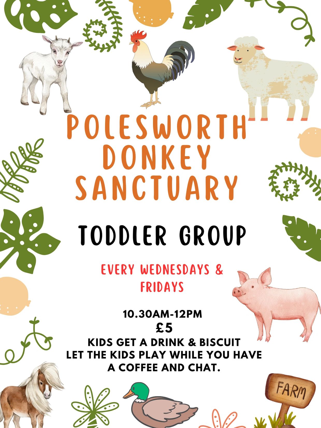 These sessions are run on Wednesdays and Fridays 10:30-12:00 making it the perfect morning activity before lunch and a nap! There are many activities to do here, such as visiting and feeding the donkeys and other farmyard animals, playing in the sandpit, and socialising with other tots.